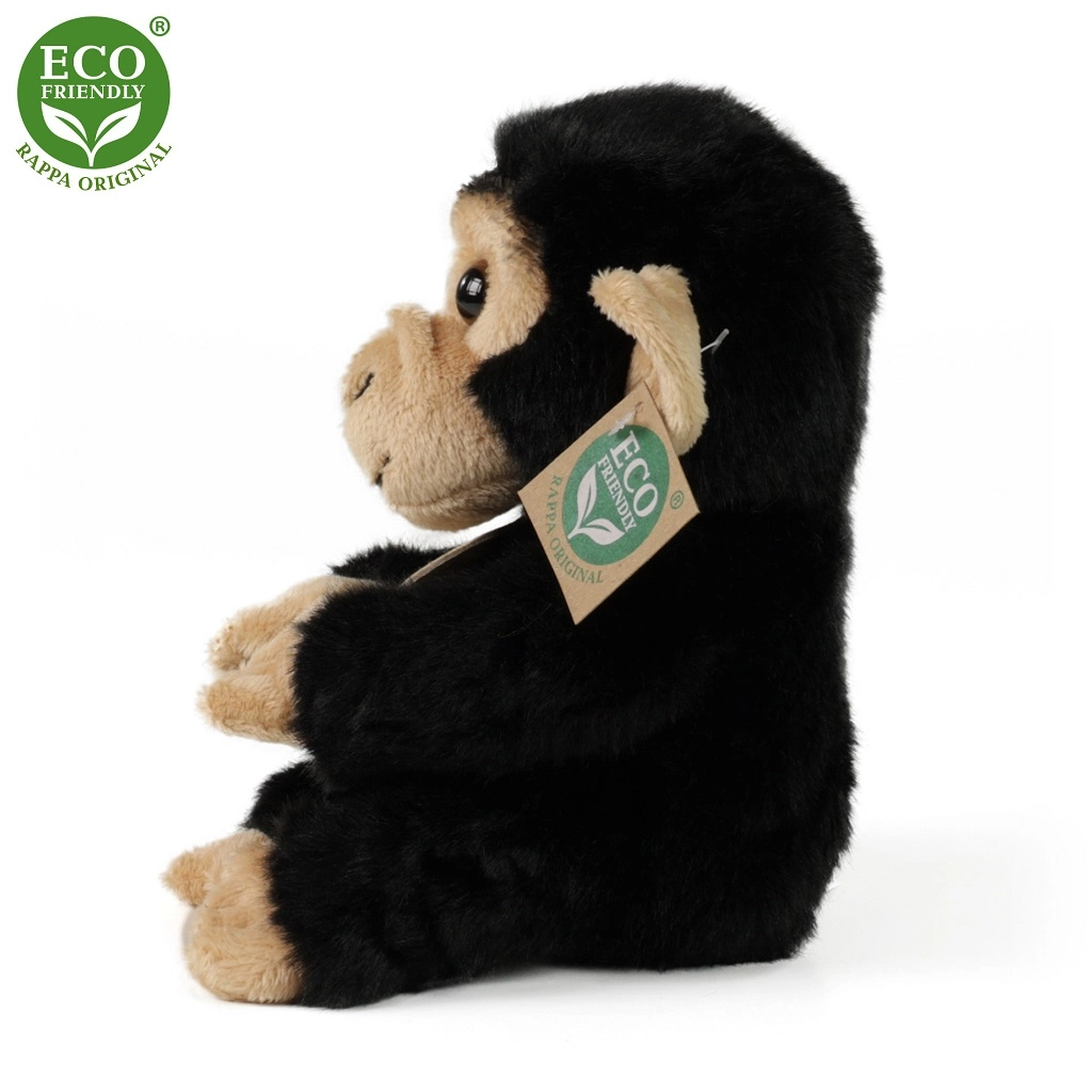 Denne siddende plyschimpanse fra RAPPA-kollektionen vinder hjerterne hos både børn og voksne. Den er håndsyet af usædvanligt blød plys, hvilket får den til at virke næsten levende og behagelig at røre ved. Det skånsomme ECO-FRIENDLY fyld af genanvendte PET-flasker er sikkert og certificeret selv til de allermindste.