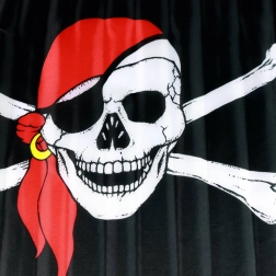 Skab den rette piratstemning med det klassiske sorte flag med hvidt kraniemotiv. Piratflaget er let, godt synligt og ligger behageligt i hånden selv for mindre børn takket være træpinden. Perfekt som tilbehør til kostumer, rumsdekoration eller rekvisit til temafotografering.