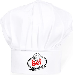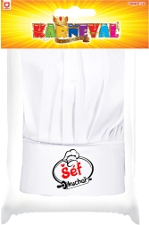 Denne hvide kokkehue kombinerer praktisk funktion og stil. Teksten “Chefkok” giver selvtillid ved madlavning og vil glæde enhver madentusiast. Universel størrelse og let materiale sikrer komfort hele dagen.