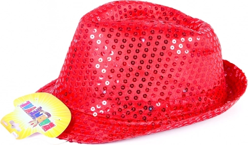 Kickstart festen med denne stilfulde røde disco-hat! Den er dækket af pailletter og blinker i farver i tre hastigheder, når den tændes. Styringen sker via en diskret sideknap, og der medfølger 3 LR44-batterier i pakken.