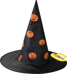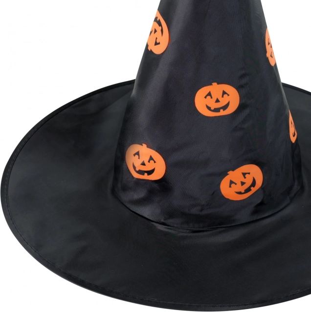 Giv børnene en uforglemmelig Halloween-oplevelse med denne sorte heksehat dekoreret med markante orange græskar. Det lette tekstilmateriale sikrer komfort hele tiden, og den klassiske spidse form giver en øjeblikkelig magisk effekt.