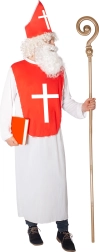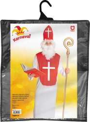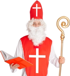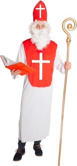 Dette Sankt Nikolaus-kostume til voksne består af en lang hvid kjortel (ca. 145 cm fra skuldrene) og en rød brystklap med et markant hvidt kors. Der medfølger også en hue med velcrolukning for hurtig og sikker fastgørelse. Takket være det universelle snit er kostumet behageligt at have på og let at lag-på-lag-style.