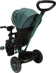 Når barnet vokser og er klar til selvstændige ture, kan sikkerhedsfunktionerne fjernes, og det kan forvandles til en klassisk trehjulet cykel. Fire forskellige melodier fra højttalerne tilføjer sjov til hver tur. Produktet er pakket i miljøvenlig papemballage.
