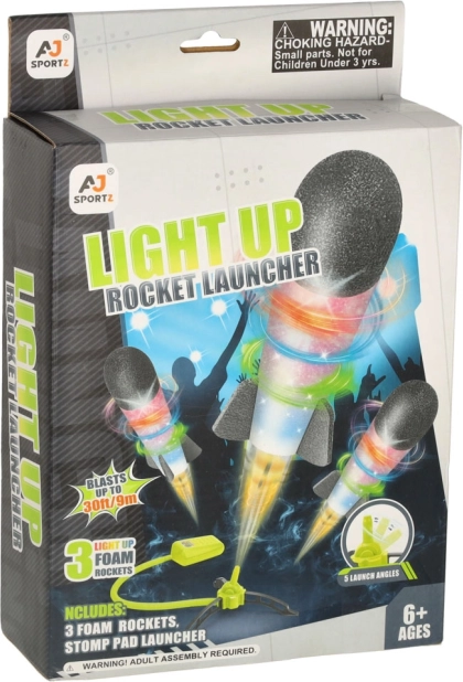 Det lysende raket-startsæt A3 Sportz bringer ikke kun glæden ved leg, men også muligheden for at udforske fysikkens love. Træd blot på pumpen og se, hvordan raketterne lyser himlen op med LED-lyseffekter. Alle raketter er lavet af blødt skum, hvilket sikrer sikkerhed ved landing og under leg.