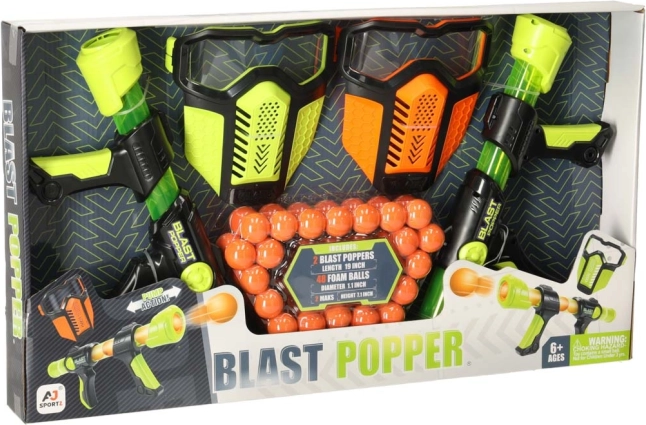 Sæt med skumpistol BLAST POPPER, 2 pistoler + 2 masker + 48 kugler