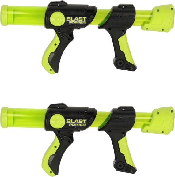 Leder du efter en gave, der virkelig begejstrer børn? Sættet med to BLAST POPPER skumpistoler giver hurtig og sikker actionleg for søskende og venner. Børn træner præcision, koordination og reaktionsevne og kan konkurrere ved at skyde på mål både hjemme og i haven.