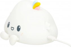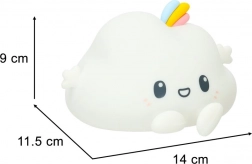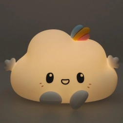Sød natlampe formet som en sky med silikoneoverflade, der vil glæde hvert barn. Den tilbyder 3 lysfunktioner (varm hvid, RGB skiftende farver, enkeltfarvet lys), touch-betjening, indbygget 1200 mAh batteri med en driftstid på 9–10 timer og USB-opladning. Det bløde, behagelige lys skaber en beroligende atmosfære for nem indsovning.