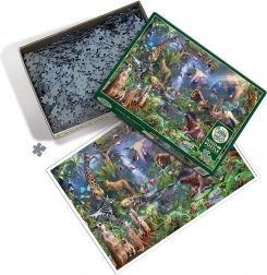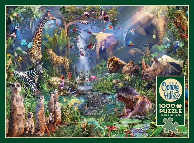 Oplev fornøjelsen ved et kvalitets‑puslespil fra COBBLE HILL med junglemotiv og 1000 brikker. Takket være de usædvanlige brikkeformer og den ukonventionelle stansning byder det på en skøn udfordring for puslespilsentusiaster. Der medfølger en fuldfarvet forlæg for mere behagelig lægning, og det færdige motiv måler ca. 67,6 × 48,9 cm.