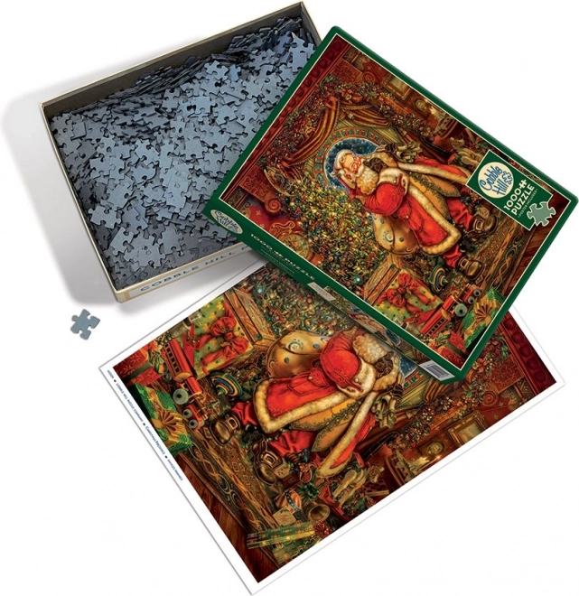 Puslespillet Julegave Nuværende fra COBBLE HILL bringer højtidernes magi direkte til dit bord. Den særlige stansning følger ikke et almindeligt gitter, hvilket giver brikkerne varierede former og tilfører større variation og udfordring til samlingen. Et ideelt valg for dem, der elsker detaljerede illustrationer og længere, koncentreret puslespilshygge.
