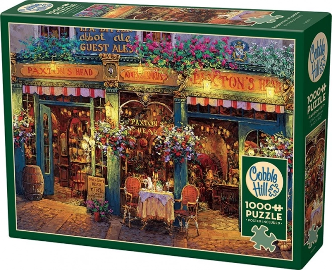Puslespillet viser en magisk scene af en blomstersmykket indgang til Paxton's Head og fremhæver farver og detaljer.