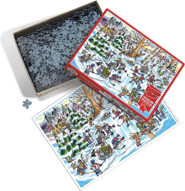 Illustrationen af hockey-byen bringer glæde og sjov til hver eneste puslespilsstund.