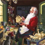 Den kunstneriske skildring af en lille værksteds-scene med en ældre mand, der minder om Santas værksted, giver en æstetisk oplevelse, og detaljerne vil glæde enhver entusiast.