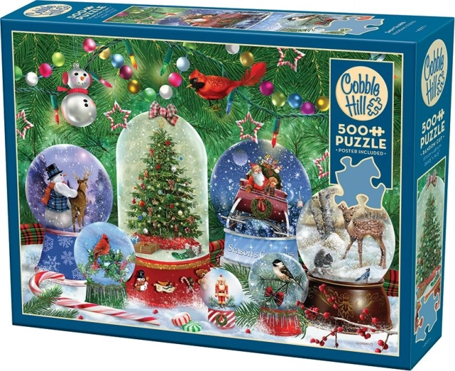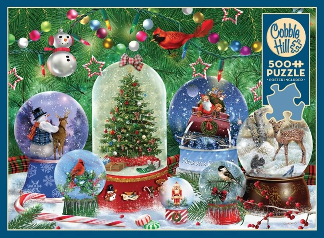 Oplev vinterstemningens magi med puslespillet COBBLE HILL Sneglobe med 500 brikker. Unikke uregelmæssige brikformer øger både underholdning og udfordring under lægningen, og den medfølgende plakat gør processen lettere. Det færdige puslespil måler ca. 67,6 × 48,9 cm.