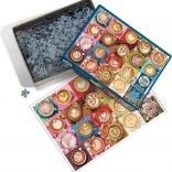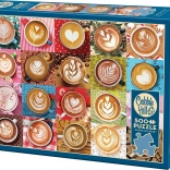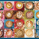 Oplev caféstemning derhjemme. Puslespillet COBBLE HILL Jeg elsker dig, latte bringer en farverig mosaik af kopper med fin latte art-skum. Takket være den unikke udstansning ligger kanter og hjørner ikke på én linje, hvilket øger både underholdningsværdi og sværhedsgrad og forhindrer forbytning af brikker.