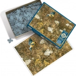 Indånd roen og skønheden i naturen med Robert Batemans realistiske kunst: en stillits mellem Dronning Annes kniplingsblomst og gyldenris fremhævet af fine detaljer og harmoniske farver. Takket være den uregelmæssige stansning er hjørner og kanter på brikkerne ikke altid på linje, hvilket øger både underholdningen og tilfredsstillelsen ved at blive færdig.
