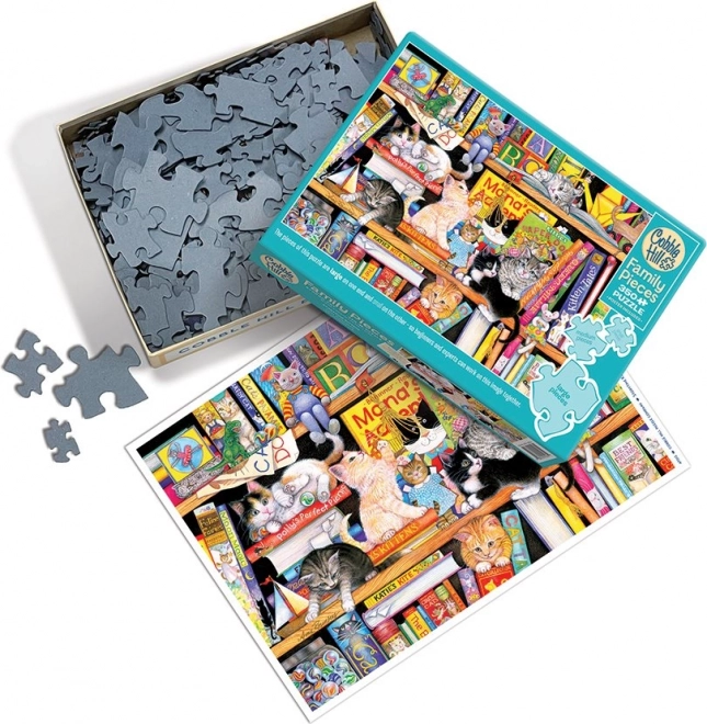 Den originale ujævne stansning fra COBBLE HILL følger ikke et klassisk gitter, hvilket gør lægningen sjovere og en smule mere krævende. I pakken finder du også en skabelon i størrelsen 31,6 × 22,9 cm, som hjælper med at orientere sig i motivet “tid til kattehistorier” fyldt med nuttede katte.