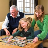 Den smarte inddeling af motivet i zoner med store, mellemstore og små brikker gør dette puslespil til en ideel aktivitet for hele familien. Mindre børn klarer de store brikker, større børn og voksne tager de mellemstore og små – alle lægger således samtidig og på det samme billede.