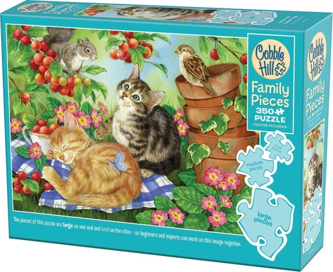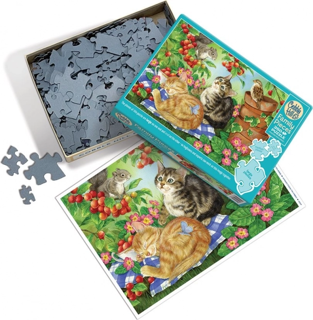 Dette familiepuslespil kombinerer klogt store, mellemstore og små brikker i ét motiv. De store brikker er placeret i den ene del af motivet og passer perfekt til mindre børn, mens de mindste brikker i den modsatte side glæder voksne og mere erfarne puslespillere. Den midterste del med mellemstore brikker er ideel til større børn eller bedsteforældre – motivet er let at aflæse, og lægningen føles flydende.
