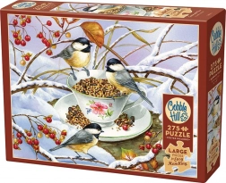 Oplev et vintermotiv med småfugle ved en kop te, der lyser ethvert bord og stue op. Dette puslespil med 275 XL-brikker fokuserer på komfort, men byder samtidig på en gennemtænkt udfordring takket være COBBLE HILLs originale stansning. Brikkerne følger ikke et klassisk gitter, så lægningen er sjov, varieret og altid fuld af overraskelser.