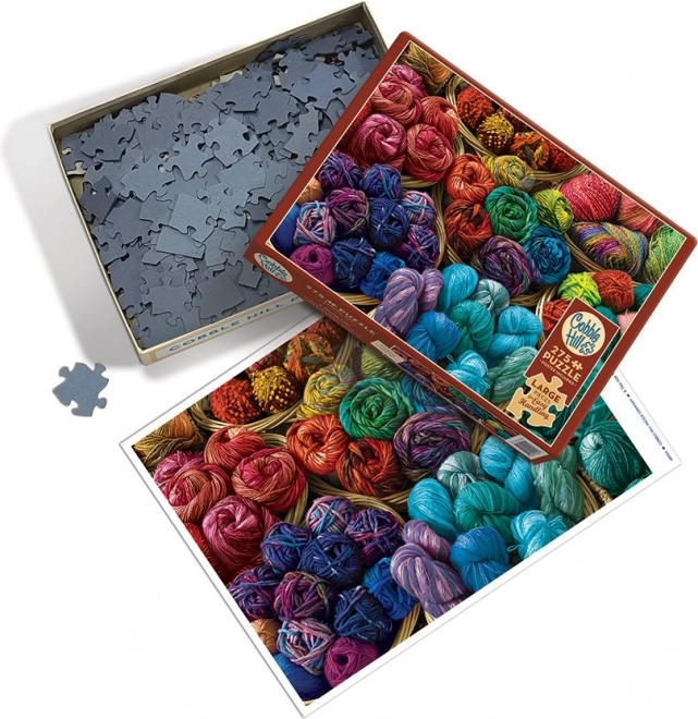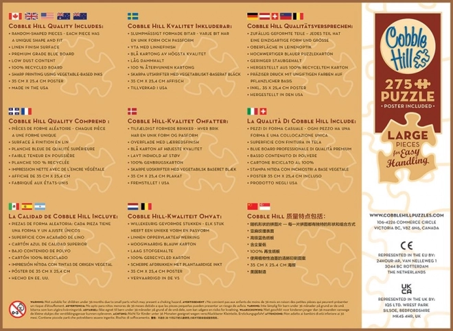 Puslespillet COBBLE HILL Længsel efter garn XL er designet til komfortabel lægning uden kompromis med underholdningen. Takket være de ekstra store brikker ligger de godt i hånden, er nemme at håndtere og hjælper samtidig med at udvikle finmotorikken. Den ikke-standard udstansning med unikke former øger attraktiviteten og giver en mere fængende oplevelse end en almindelig gitterudstansning.