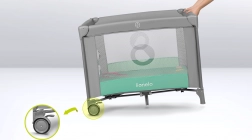 Kravlegården er udstyret med to hjul med bremser og en praktisk transporttaske for nem flytning.