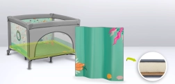 Kravlegården har en sideindgang med lynlås, der sikrer nem adgang, og de luftige og gennemsigtige sider tillader let overvågning af barnet. Den hævede bund giver bedre ventilation og beskytter mod kulde fra gulvet. Konstruktionen indeholder desuden ingen skarpe kanter, hvilket understøtter barnets sikre forsøg på de første skridt.