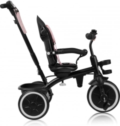 Det børnekøretøj Lionelo Berry Pink kombinerer funktionerne af en klapvogn og en trehjulet cykel. Med et drejeligt sæde og højdejusterbart håndtag tilpasser den sig både børns og forældres behov. Sikkerheden sikres med 3-punktssele, beskyttelsesramme og barriere omkring sædet. Nem foldning ved klik uden behov for værktøj gør håndteringen let.