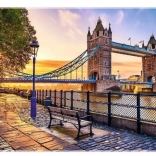 Puslespillet viser et smukt fotografi af Tower Bridge ved solnedgang, ideelt for fans af arkitektur og rejser.