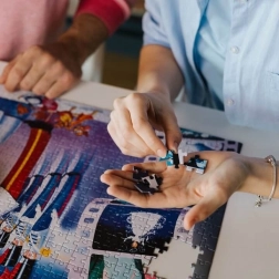 • Takket være kartonets tykkelse kan det samlede puslespil nemt flyttes uden risiko for at gå fra hinanden.