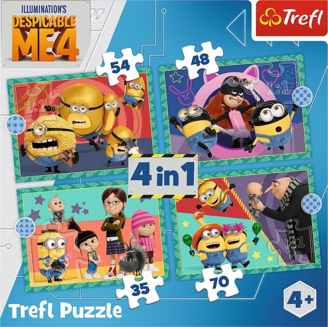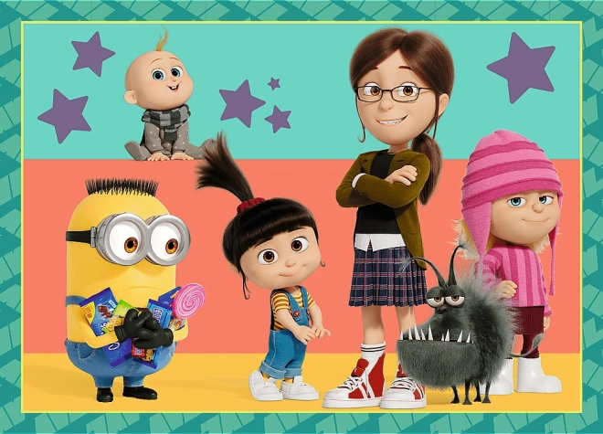 Oplev sjov med de populære helte fra filmen Grusomme Mig og Minions. Sættet indeholder fire uafhængige puslespil, som hver danner et farverigt billede i størrelsen 285 × 205 mm, når de er lagt. Takket være den varierende sværhedsgrad kan børn vælge, hvilket puslespil de kan klare lige nu – og gradvist blive bedre.