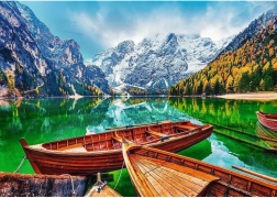 Oplev Dolomitternes magi med et puslespil på 500 brikker fra TREFL, der viser det ikoniske Lago di Braies – en rolig sø omgivet af bjerge og træbåde. Høj kvalitet, behagelig mat overflade og præcist udstansede brikker sikrer nem lægning og et smukt resultat.
