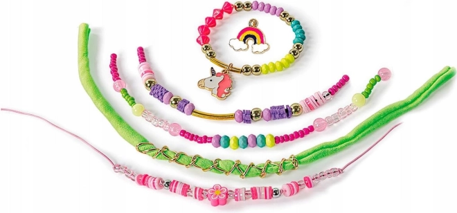 Et sæt til små designere, der elsker farver, glimmer og enhjørningenes magiske verden. Takket være elastiske snore og alsidige perler kan du nemt skabe originale armbånd til dig selv og dine veninder. Vedhæng med enhjørninge og regnbuer giver hvert smykke et eventyrligt præg.