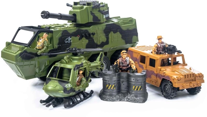 Pakken indeholder en solid panseret mandskabsvogn, en adræt helikopter med roterende rotorer, en robust jeep og et sæt tilbehør inklusiv soldater og forhindringer. Alsidigt tilbehør gør det muligt at opbygge en egen kampbase og udvide legen med taktiske elementer.