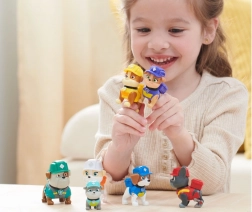 Oplev den nemmeste måde at samle hele holdet af byggehelte fra PAW Patrol: Rubble og hans hold. I pakken finder du Rubble, Wheeler, Mix, Charger, Motor, tante Kran og bedstefar Grus. Hver figur er ca. 5 cm høj, kan stå selv og imponerer med klare farver, hjelme, rygsække og genkendelige detaljer fra skærmen.