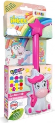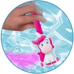 Læg en brusende dråbe i enhjørningen og dyp tryllestaven i vand – fra staven trylles et klart farvespor frem, som gør badet til en magisk oplevelse.