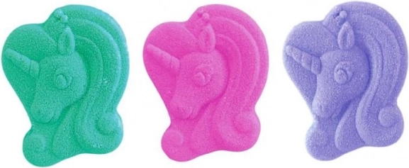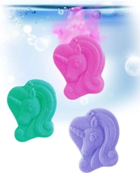 Hver tablet begynder at bruse og opløses, når den lægges i vandet, og fylder badet med duften af karamellagkage. Tre forskellige farver – lyserød, lilla og turkis – giver hvert bad en ny stemning. Velegnet til børn, der elsker enhjørninger og legende farver.