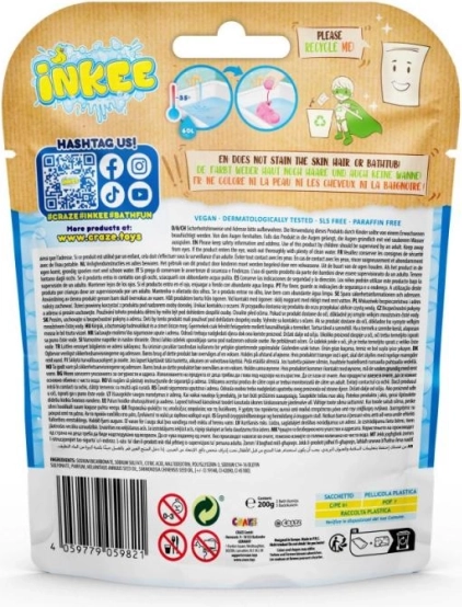 INKEE-produkter er designet med omtanke for både børn og natur – de er veganske, uden mikroplast, uden SLS, uden paraffin og velegnede til børn fra 3 år. Pakket i en praktisk pose med vindue for nem farvevalg.