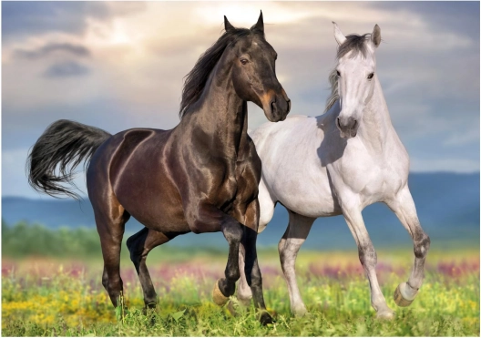 Oplev glæden ved at lægge puslespil med et fængende motiv af to heste i løb. Billedet imponerer med realistiske detaljer og levende farver, som efter færdiggørelse skiller sig ud som dekoration. Takket være den gennemtænkte sværhedsgrad er puslespillet perfekt for både begyndere og øvede.