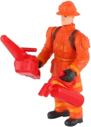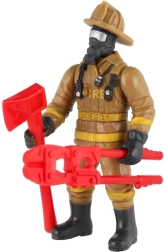 Denne detaljerede brandmandsfigur i beskyttelsesudstyr (uniform, hjelm, handsker) er et fantastisk supplement til børns samling af actionhelte. Blandede varianter med forskelligt tilbehør (økse, brandslukker, koben/tænger, skovl, motorsav) giver hver gang en ny historie og en spændende redningsaktion.
