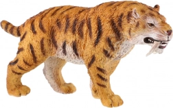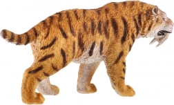 Den teksturerede pels, naturlige striber og markante hjørnetænder giver figuren et autentisk udseende af en forhistorisk rovdyr.