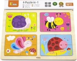 Sættet indeholder fire adskilte puslespil med farverige illustrationer af dyr velegnet til børn. Hvert billede består af fire dele, hvilket i alt udgør 16 brikker. Puslespillene er beregnet til børn fra 18 måneder og støtter deres finmotorik, logiske tænkning og kreativitet.