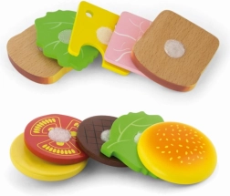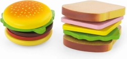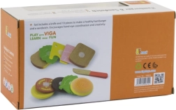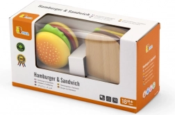 Dette VIGA træsæt med hamburger og sandwich er ideelt for små børn, der elsker at efterligne voksne mens de laver mad. Farverige og sikre trækomponenter, som bøffer, salat, tomater og ost, giver mulighed for ubegrænset leg og kreativitet. Legetøjet hjælper med at udvikle: