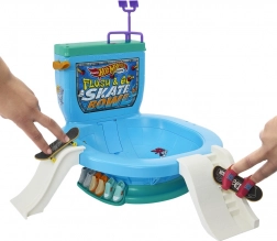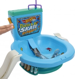 HOT WHEELS Skate Flush & Go er en sjov finger-skatepark, der forvandler “toiletskålen” til den perfekte bowl til tricks. Et tryk på håndtaget sender boardet direkte ud i fart og action, og du kan følge op med hop fra ramperne, slides på railen og drops fra bagrampen. Ideel til træning af skills og endeløse legescenarier.