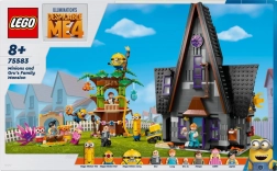 Med LEGO-sættet Gru og minions: Familiebolig kan børn opleve et eventyr som taget ud af filmen. Byg kendte bygninger som Grus ikoniske hus og den farverige træhytte, som er fuld af detaljer som en rød sofa, pejs og et soveværelse i raketstil. Sættet indeholder også et laboratorium fyldt med gag-genstande, der sætter gang i fantasien!