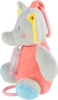Den musikalske plyselefant glæder enhver baby med sin blide berøring og behagelige farver. Takket være den praktiske klips eller ring kan den nemt fastgøres på barnevogn, autostol eller tremmeseng og bliver dermed en favoritkammerat lige ved hånden. De bløde teksturer og kontrastdetaljer stimulerer perception og udvikler finmotorikken.