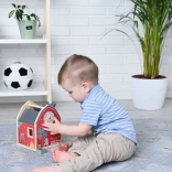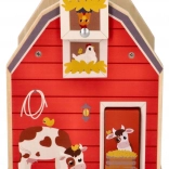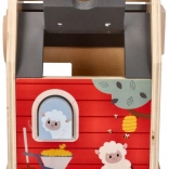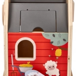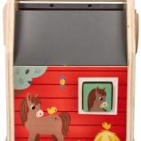 Farverigt, tosidet hus i form af en stald med søde illustrationer, designet som en bærbar legetøjskasse.