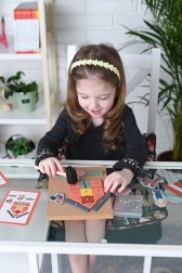 Med dette sæt skaber børn ikke blot deres egne mønstre, men forbedrer også hånd-øje-koordination og finmotoriske færdigheder. Den praktiske emballage sikrer desuden, at alle dele bliver sammen, og at legetøjet er nemt at rydde op og opbevare. Korkbrættet giver uendelige timer med sjov og læring for hvert barn.