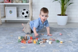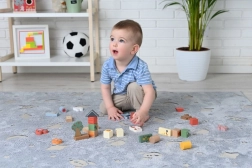 Hver blok er levende malet og inkluderer motiver som dyr, traktorer og landbrugsbygninger, der gør børns leg levende.