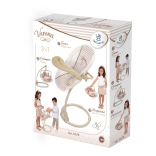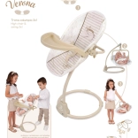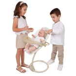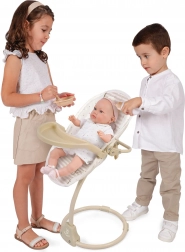 Denne multifunktionelle højstol og gynge til dukker 3 i 1 fra Verona-kollektionen giver børn realistisk leg og mange muligheder for at passe deres yndlingsbaby. Kombinationen af lys beige og hvid med prik- eller stribemønstre, suppleret af diskrete kanter og sløjfe-applikationer, skaber et tidløst naturligt look inspireret af spansk design.