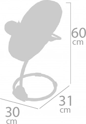 Takket være det aftagelige og vendbare sæde kan produktet bruges som højstol med bakke, beroligende gynge eller som et separat bæresæde. Den robuste metalkonstruktion forenes med lette plastdele og et behageligt tekstilbetræk for både dukkens komfort og nem vedligeholdelse.